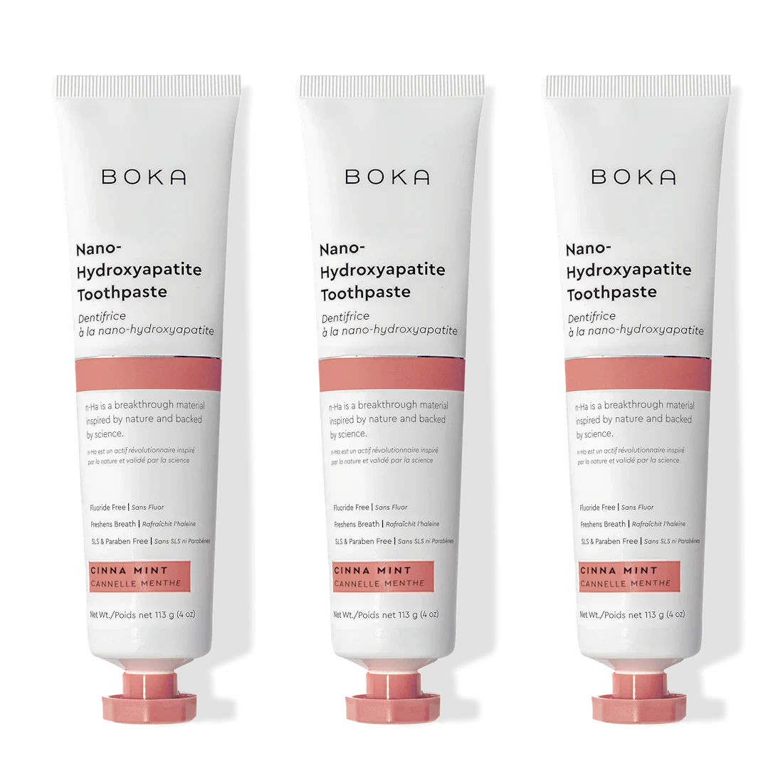 Hot cinnamon swirls with a touch of cool peppermint. This power-packed toothpaste trades fluoride for nano-hydroxyapatite (n-Ha) a biomimetic mineral form of the same ingredient that naturally makes up 97% of your teeth material and 70% of your dentin. n-Ha has been the subject of significant research for decades with a wide variety of potential benefits across dentistry and oral care.