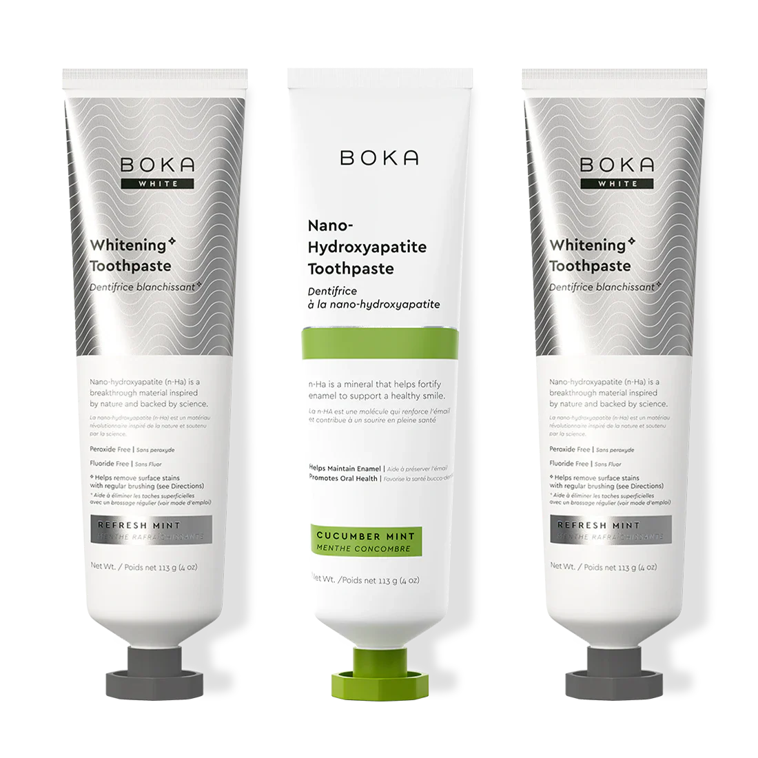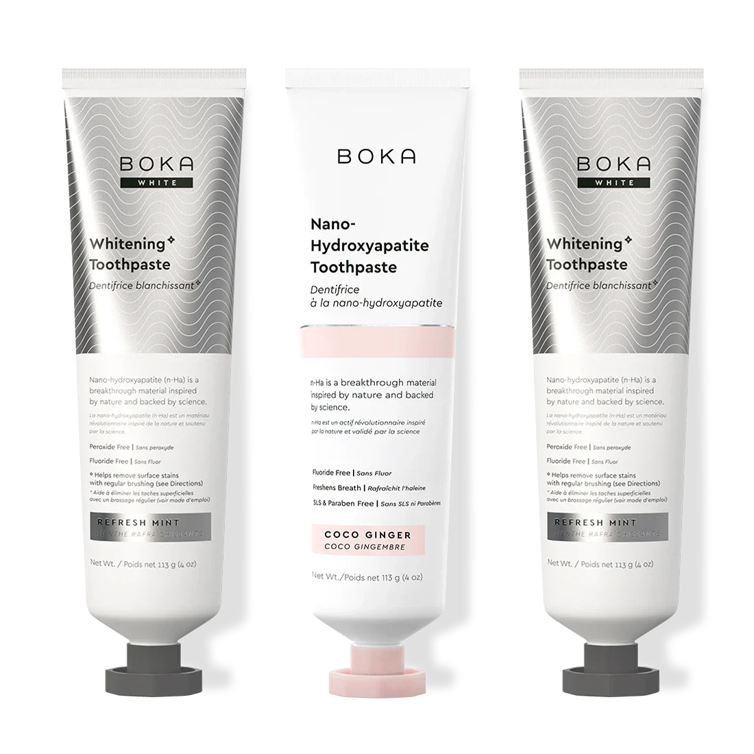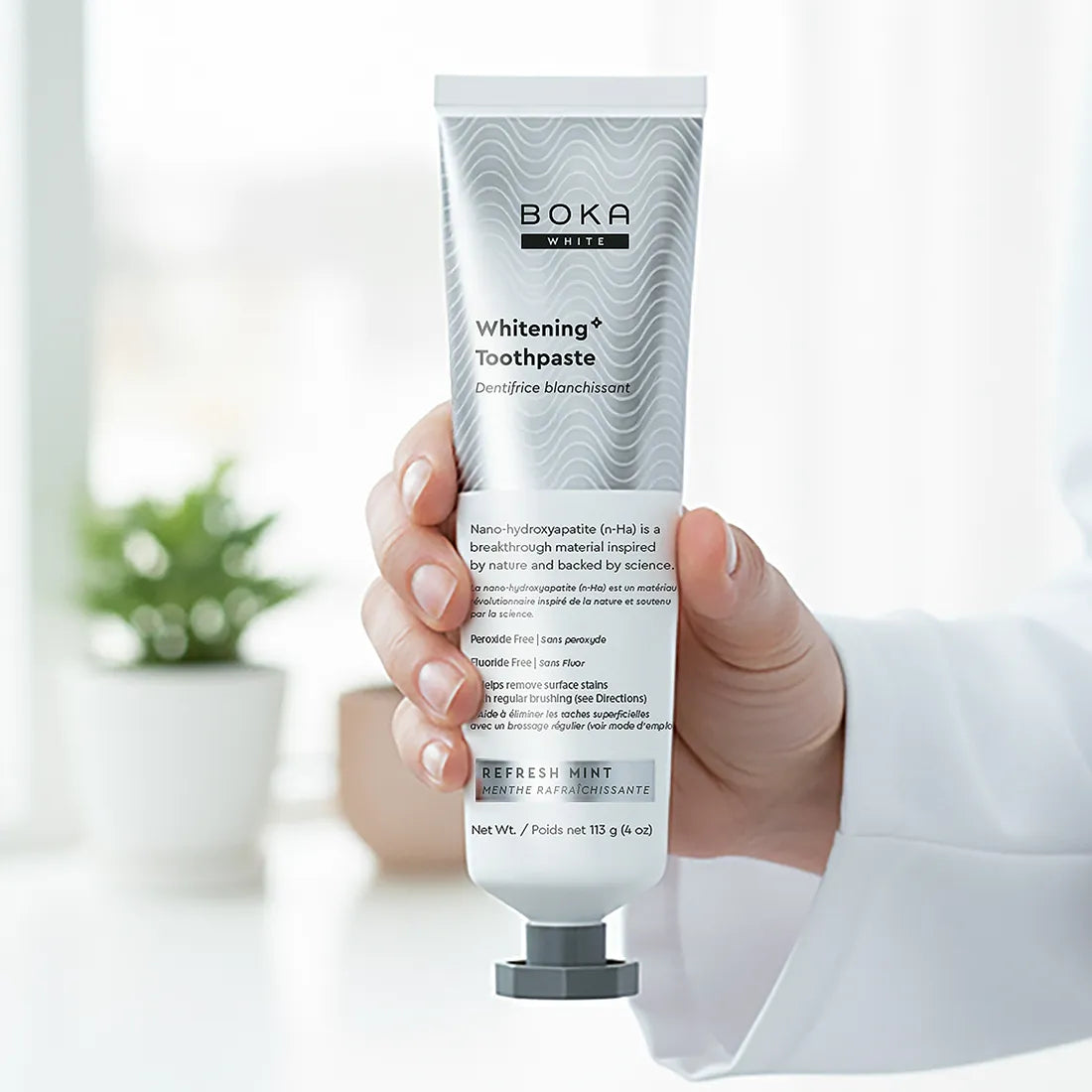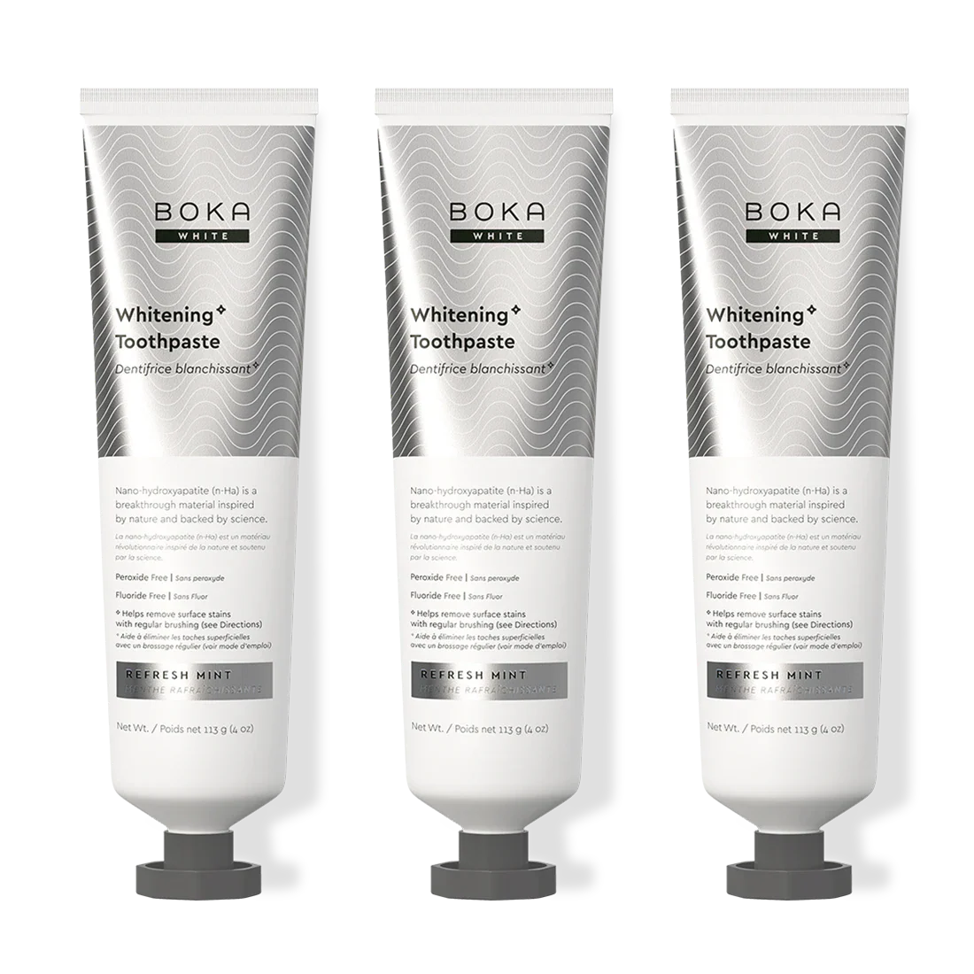 Our Teeth Whitening* Toothpaste: Peroxide-Free. Pepperminty.Our proprietary and innovative formula includes Nano-hydroxyapatite (n-Ha) - a biomimetic mineral form of the same ingredient that naturally makes up 97% of your teeth material and 70% of your dentin. n-Ha has been the subject of significant research for decades with a wide variety of potential benefits across dentistry and oral care.