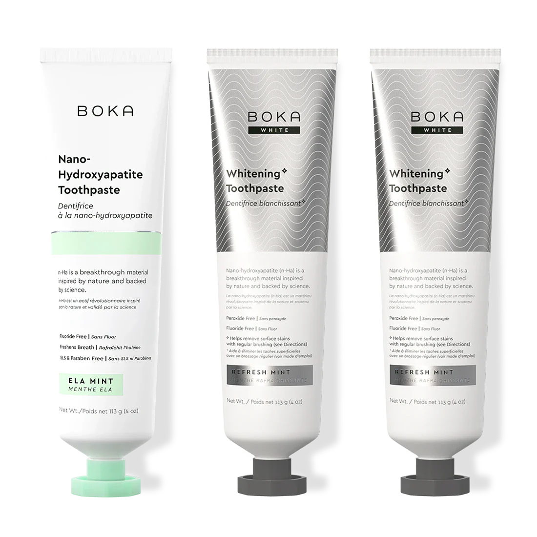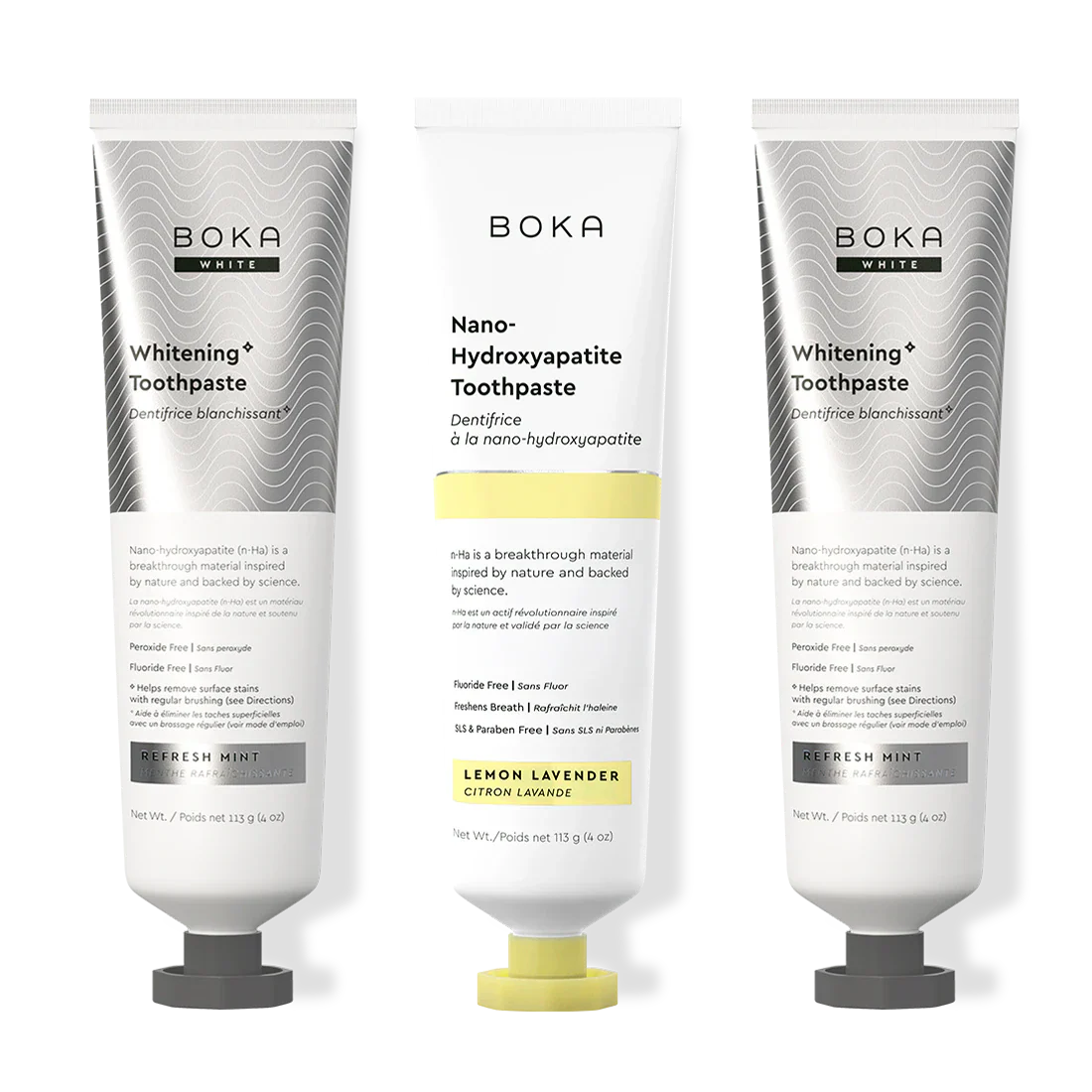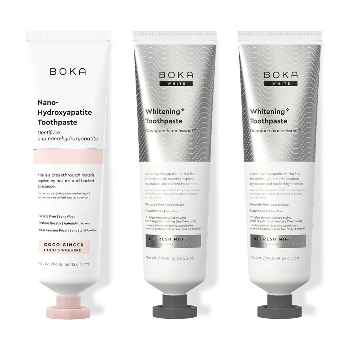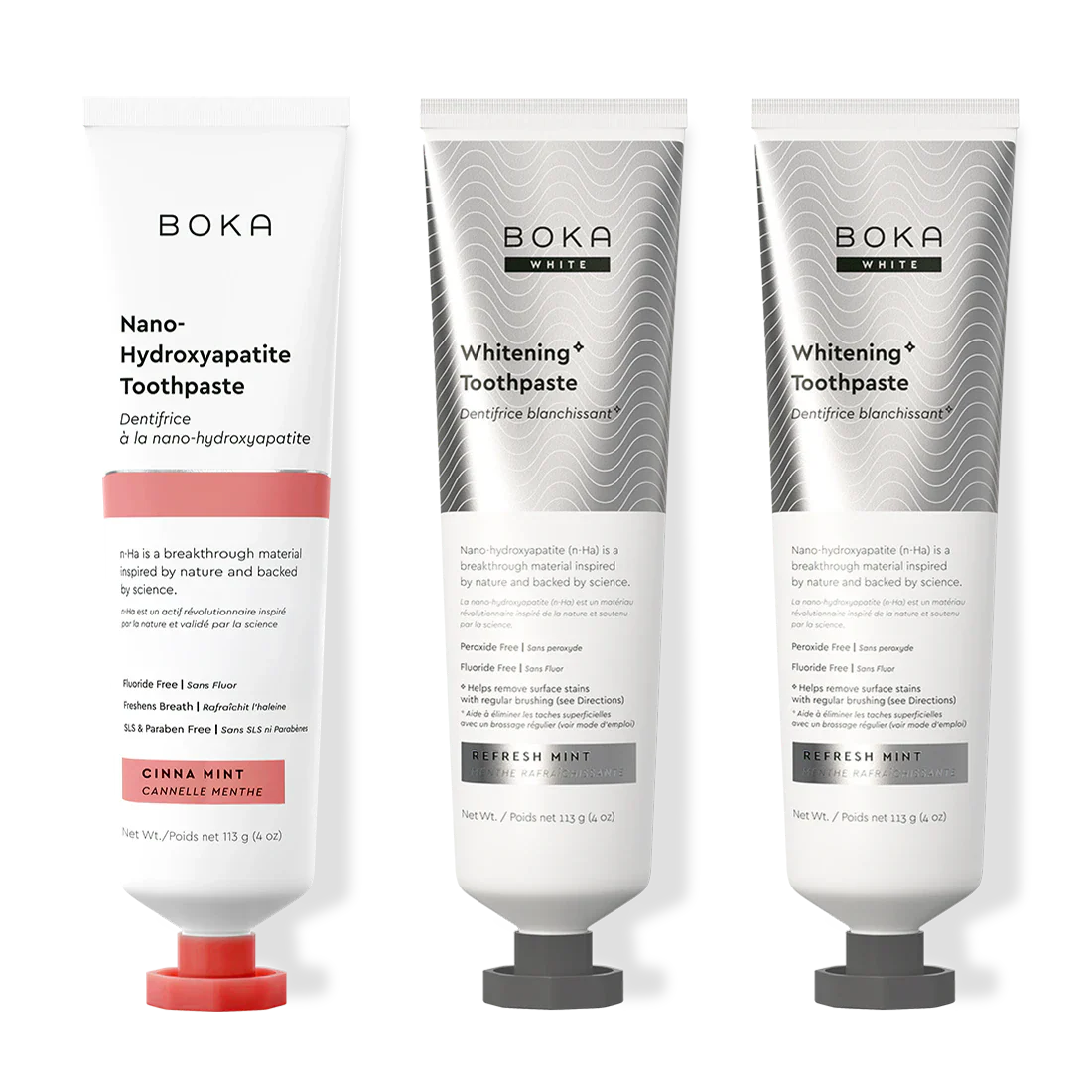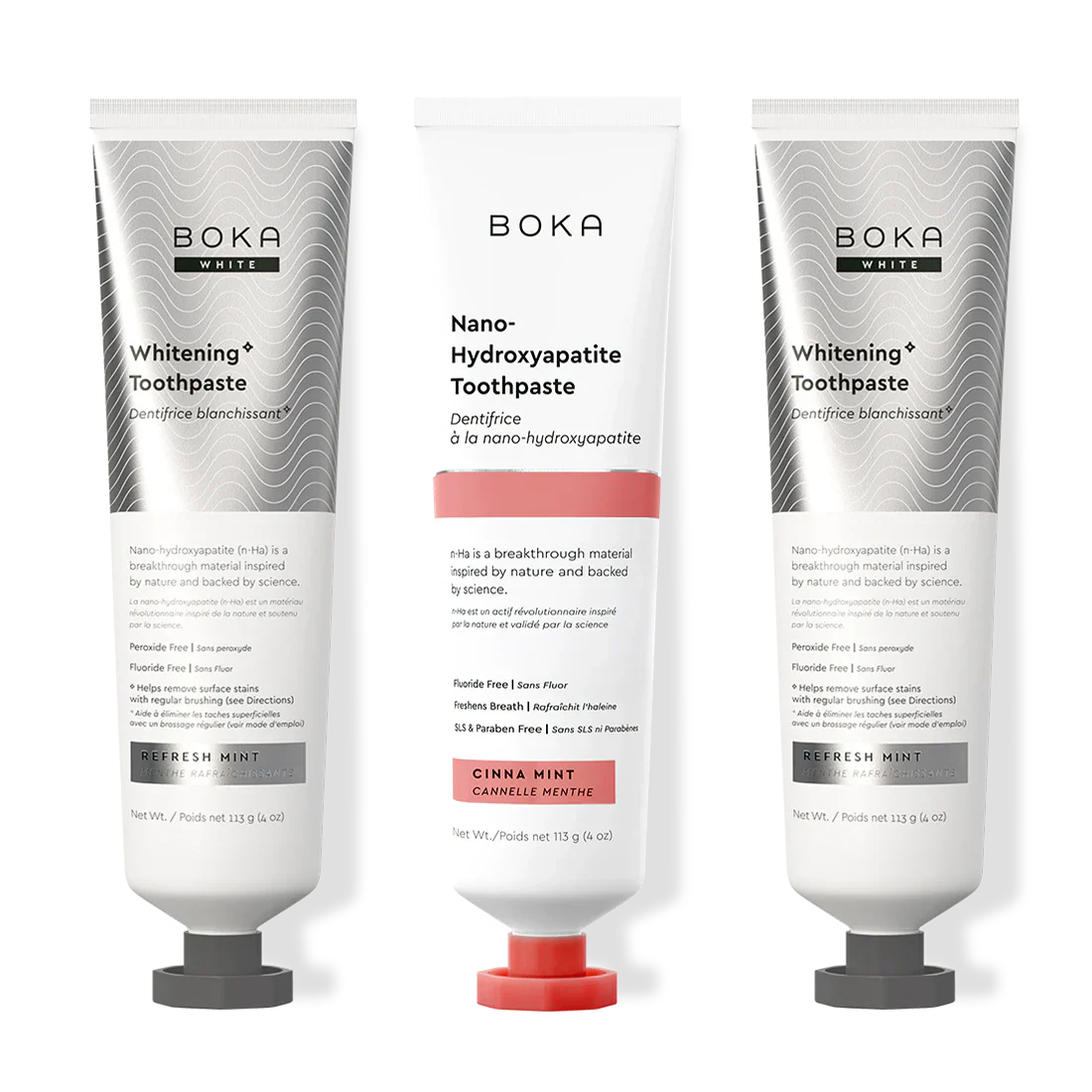 Our Teeth Whitening* Toothpaste: Peroxide-Free. Pepperminty.Our proprietary and innovative formula includes Nano-hydroxyapatite (n-Ha) - a biomimetic mineral form of the same ingredient that naturally makes up 97% of your teeth material and 70% of your dentin. n-Ha has been the subject of significant research for decades with a wide variety of potential benefits across dentistry and oral care.