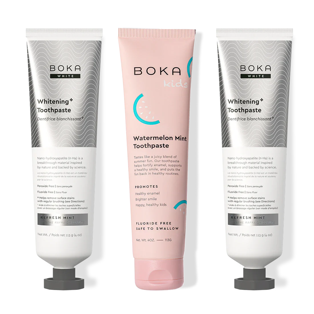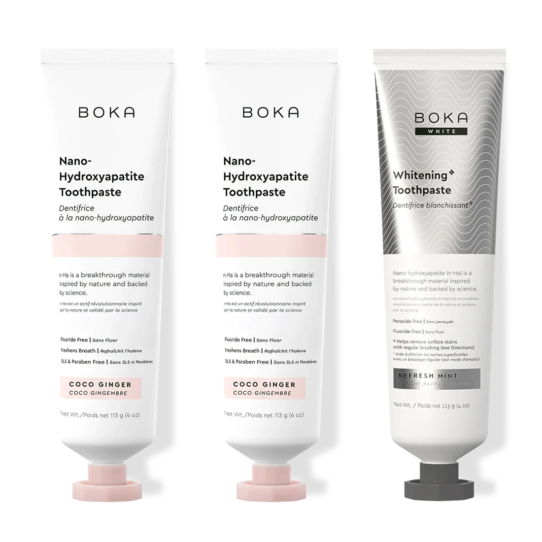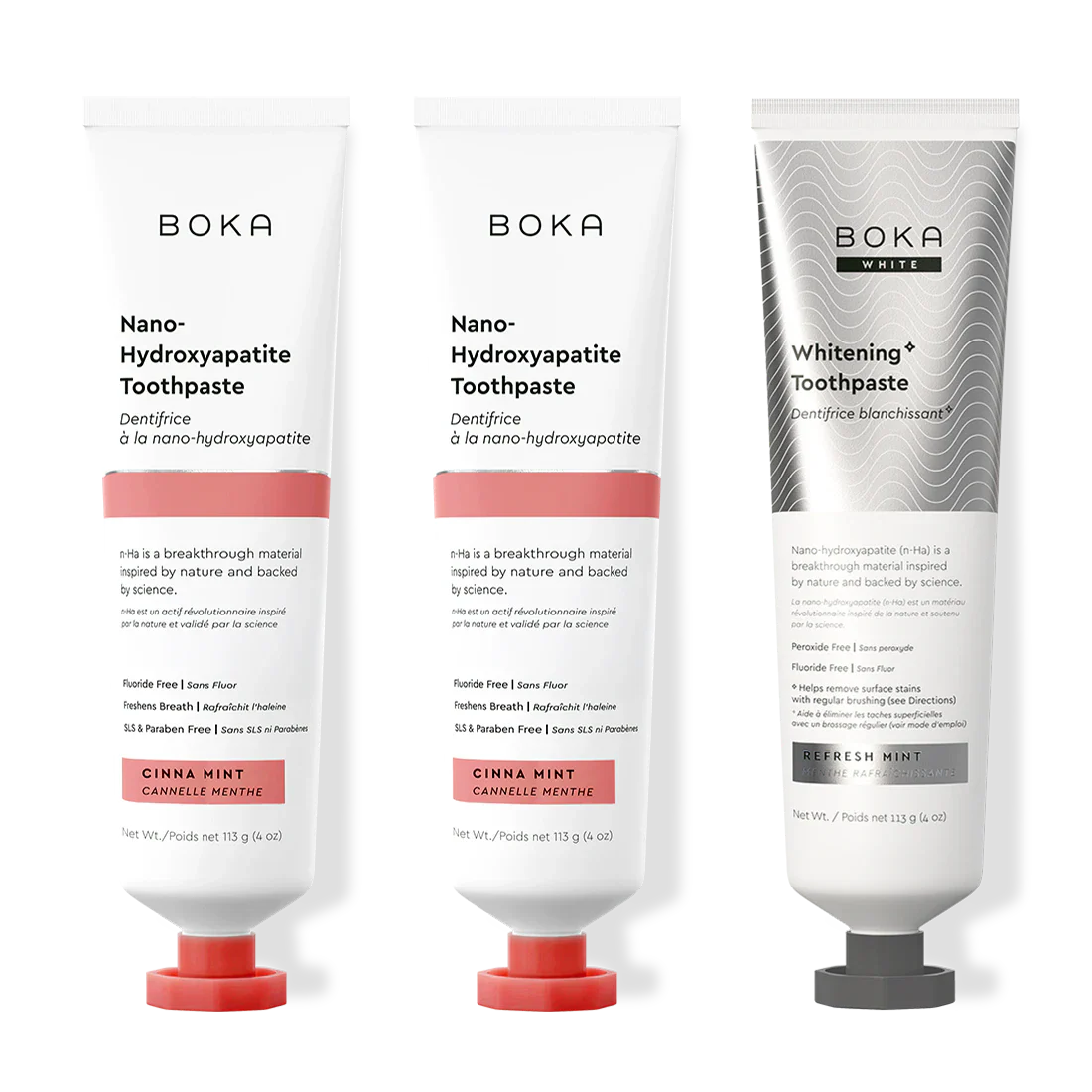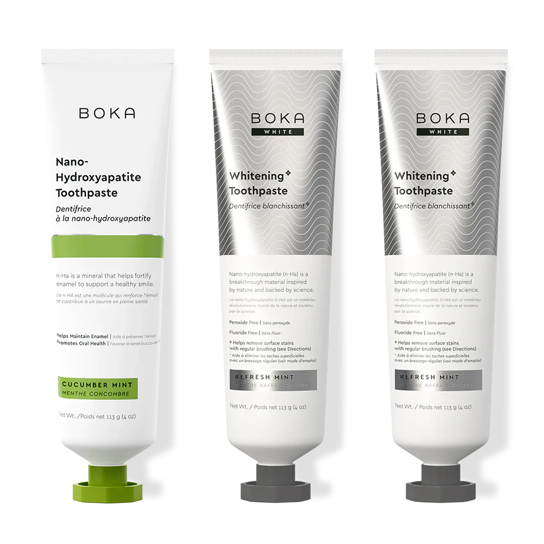 Our Teeth Whitening* Toothpaste: Peroxide-Free. Pepperminty.Our proprietary and innovative formula includes Nano-hydroxyapatite (n-Ha) - a biomimetic mineral form of the same ingredient that naturally makes up 97% of your teeth material and 70% of your dentin. n-Ha has been the subject of significant research for decades with a wide variety of potential benefits across dentistry and oral care.